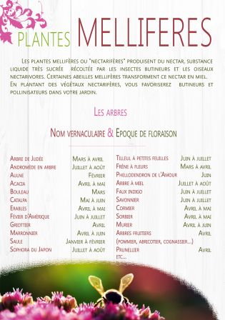 Vous trouverez sur ces 4 pages la liste des plantes mellifères (document élaboré par le Club Apicole du lycée horticole du Pressin et l’Association Les Amis des Abeilles.