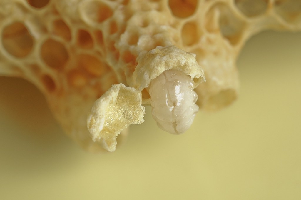 L’espérance de vie d’une reine est de 4 à 5 ans, contre 5 à 6 semaines pour une ouvrière. Exclusivement nourrie de gelée royale (et nettoyée par les autres abeilles) tout au long de sa vie, la reine garde sa position de seule abeille féconde en inhibant les systèmes reproducteurs des butineuses par l’émission de messages chimiques, à base de phéromones. Si la reine disparait, les hormones des ouvrières reprennent le dessus et le flambeau de la reproduction sera repris. Seul problème : les œufs des sujets de la reine ne sont pas fécondés et donneront 100% de mâles (on parle de ruche bourdonneuse) et la ruche sera vouée à mourir.