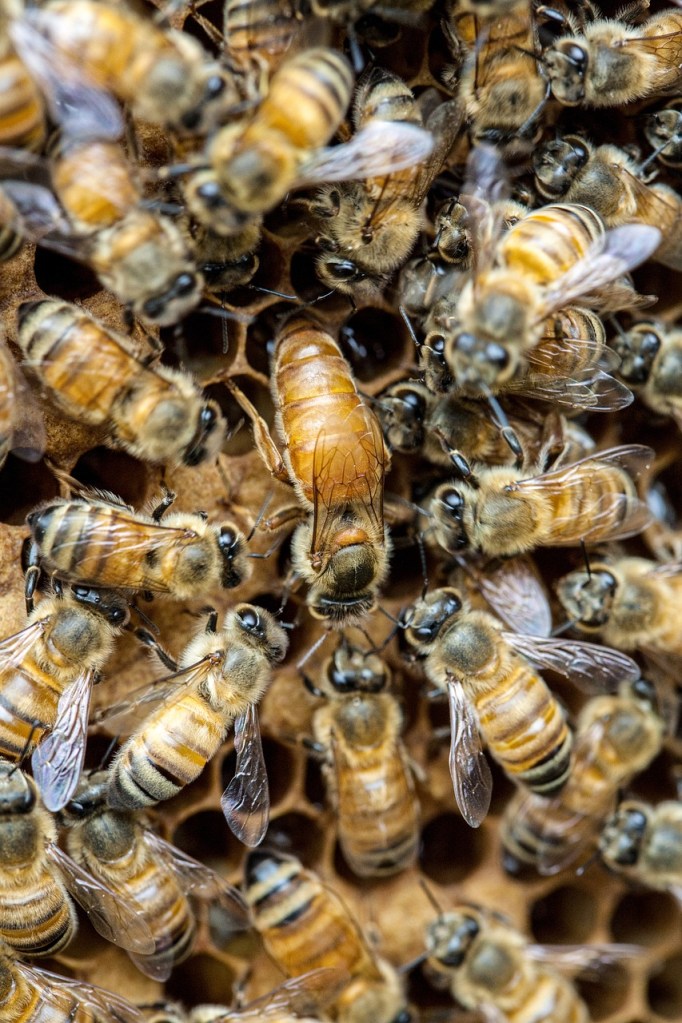 La reine est la seule femelle féconde de la ruche et donnera naissance à toutes les abeilles de la colonie, qu’il s’agisse d’ouvrières ou de faux bourdons.