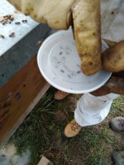 - nous comptons le nombre de varroas, et remettons les abeilles dans leur ruche pour les laisser se réveiller tranquillement.