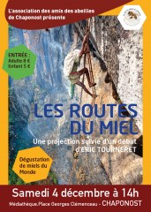 La conférence d’Eric Tourneret, auteur du livre « les Routes du miel » ,nous fait découvrir 23 pays. Cette évènement est organisé par les amis des abeilles de Chaponost, membre du syndicat d’apiculture 69,