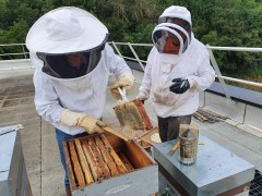 - Nous avions convenu de venir extraire dans l’entreprise le miel du rucher que l’association supervise sur le toit de celle ci.