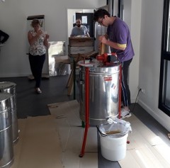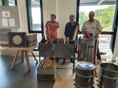 - Vendredi 3 juin, Olivier, Gilles, Daniel, Cathy et Emmanuel se sont occupé de l’extraction du miel.