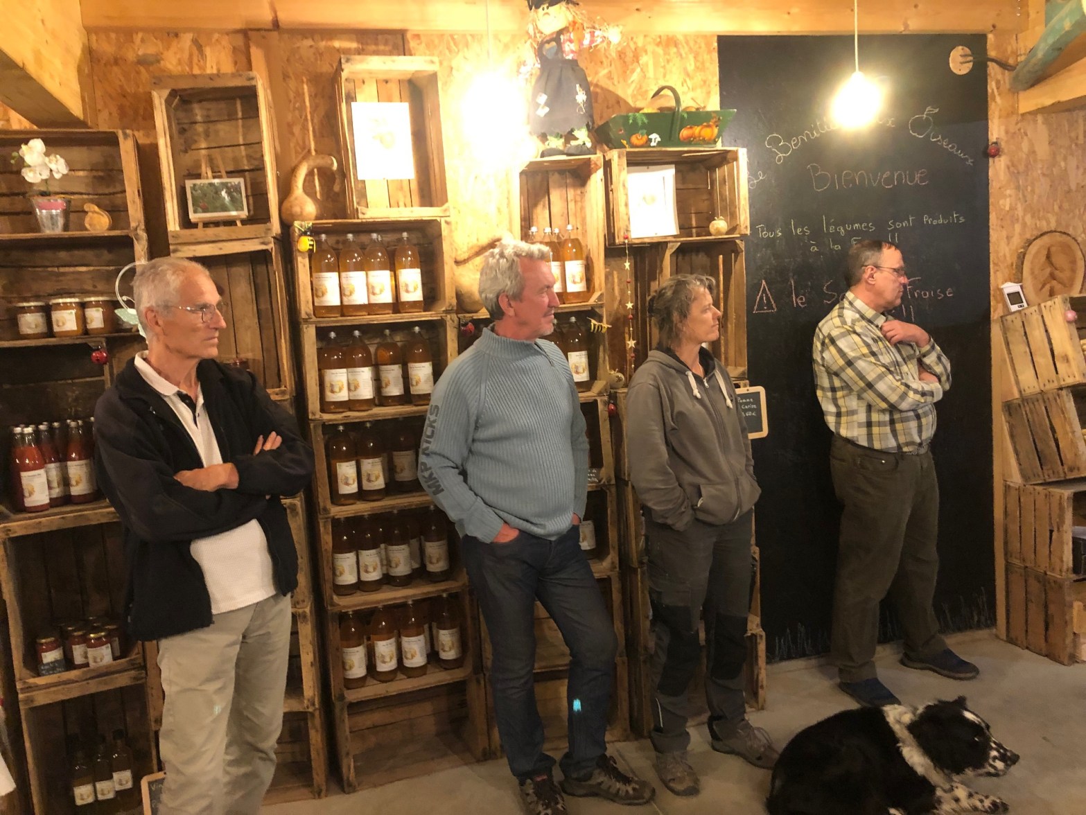 *découverte de leur hangar de production ( qui nous a permis de manger au sec et au chaud, à l’abri de cette soirée pluvieuse et orageuse)